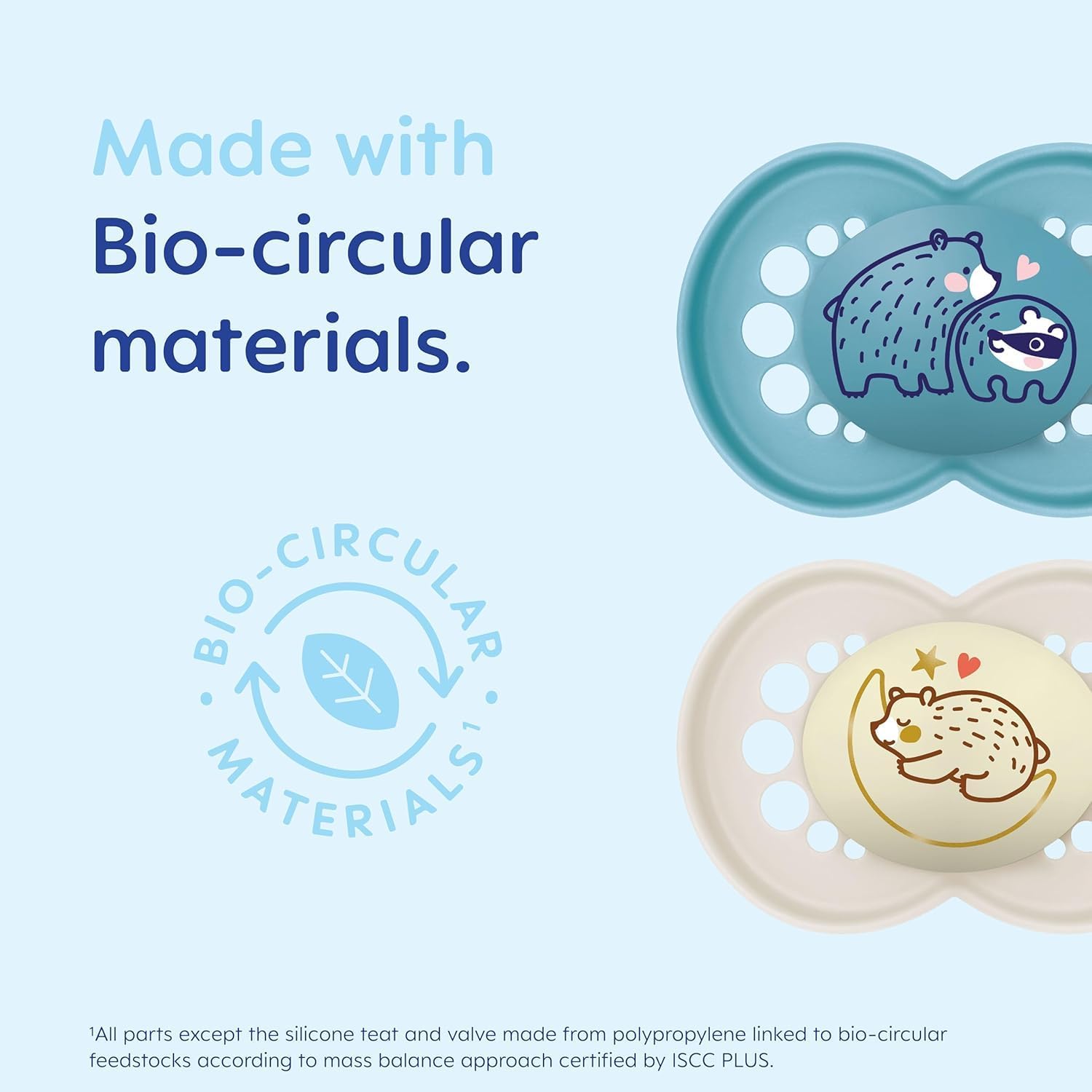 MAM Original Soothers | 18-36 Months | Pack of 2 | Comes in Dummy Steriliser Box | Sustainable Materials | Baby Accessories | Cream (Various Designs)