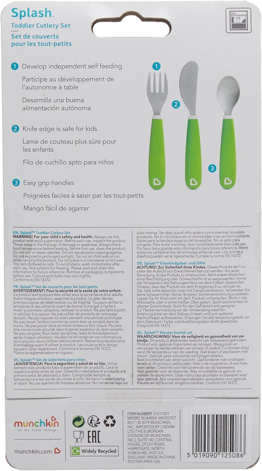 Munchkin Splash Toddler Cutlery Set (Fork, Knife & Spoon), Blue