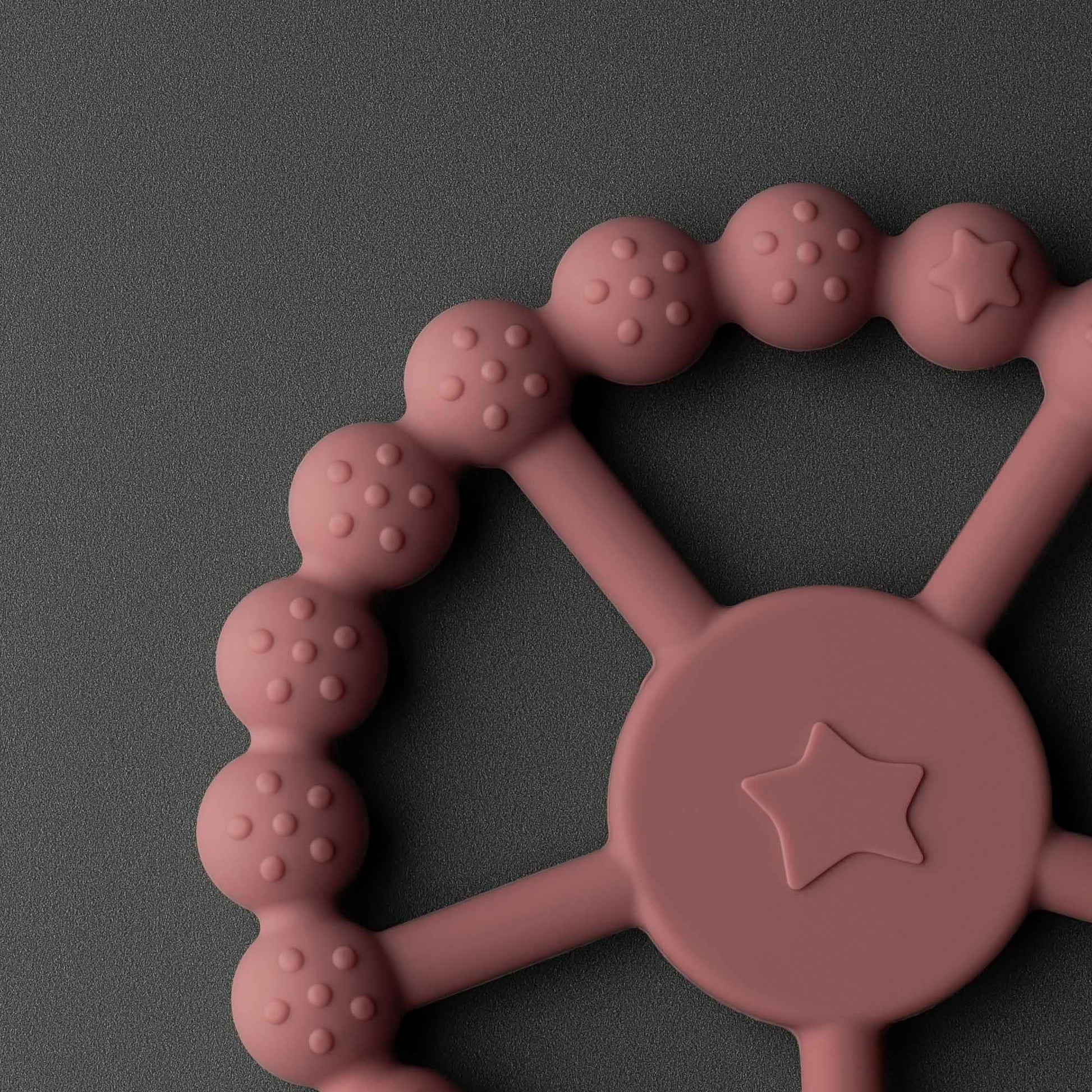 - Round silicone teething ring: Specially designed teether to gently massage sore gums and teeth, with a varied texture to help stimulate baby's sensory development from 3 months